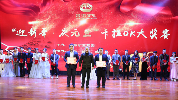 隨后,金徽股份“迎新年·慶元旦”卡拉OK大獎賽在氣勢磅礴的《一壺老酒》中拉開了序幕,來自采礦生產一線和企業管理、行政后勤等部門的21位參賽選手帶來《父親的草原母親的河》《愛拼才會贏》《濤聲依舊》《精忠報國》《明天會更好》等歌曲,蕩氣回腸,余音繞梁,感染力和現場帶動感極強,讓觀眾們陶醉其中。選手們放聲高歌、深情演唱,使得整場比賽高潮迭起、精彩紛呈、掌聲不斷、氣氛熱烈。在專業評委老師的現場見證下,安全環保部張海燕演唱的歌曲《幸福來敲門》獲得了大賽特等獎,公司領導分別為參賽的21名選手頒發了特等獎、一等獎,二等獎,三等獎和優秀獎。