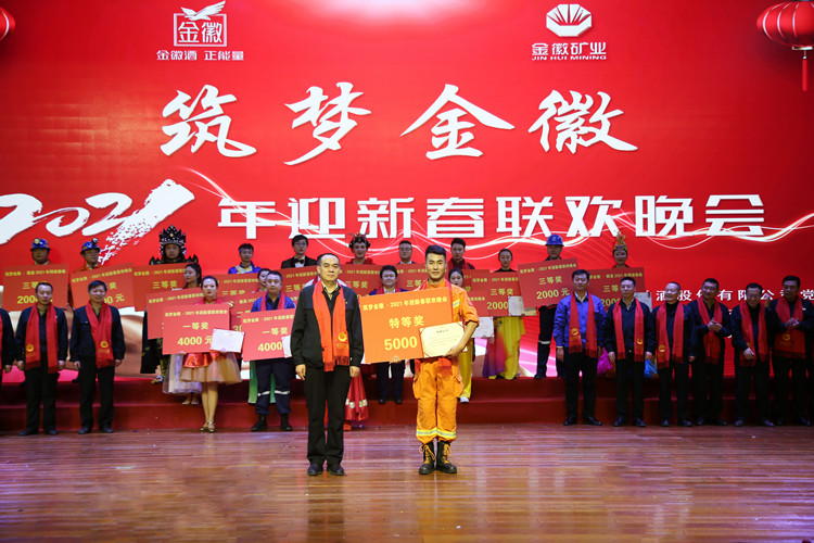 經專業評委團的現場打分、評選,公司領導為獲得1個特等獎、3個一等獎、6個二等獎、10個三等獎節目,分別頒發了5000元、4000元、3000元、2000元的獎金和榮譽證書,在此基礎上,還向3個組織節目得力的部門頒發了優秀組織獎,各發獎金2000元。晚會在《金徽礦業之歌》的濃濃祝福中圓滿結束。